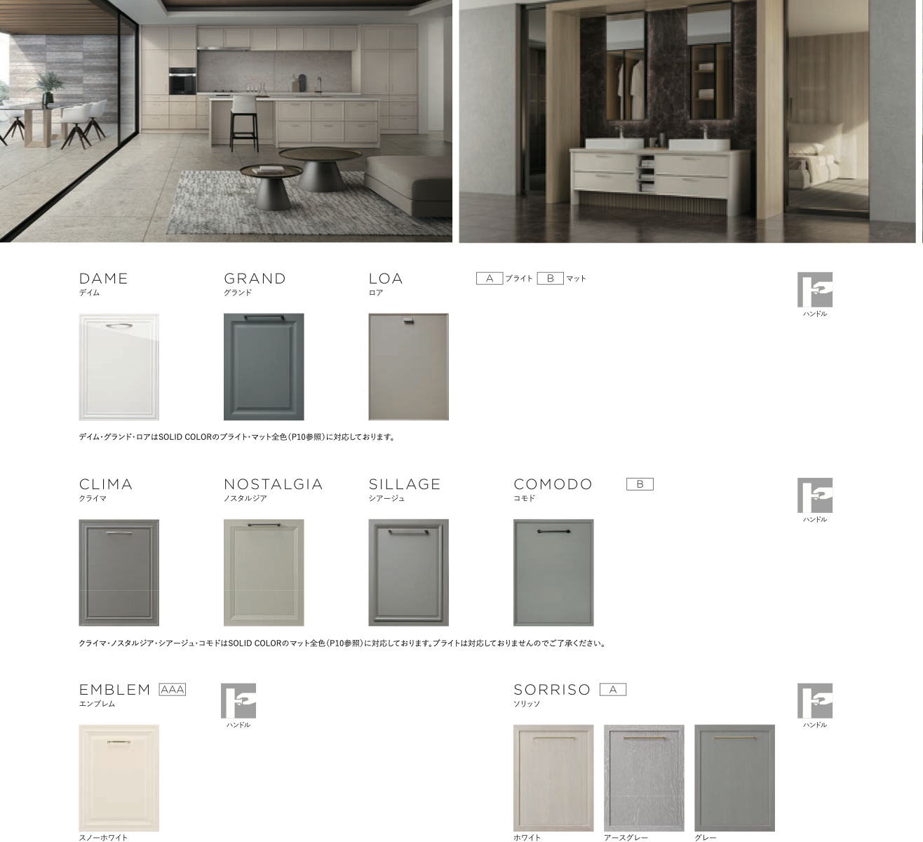 クチーナの最大の特徴でもあるカマチ造りの扉の種類の豊富さ