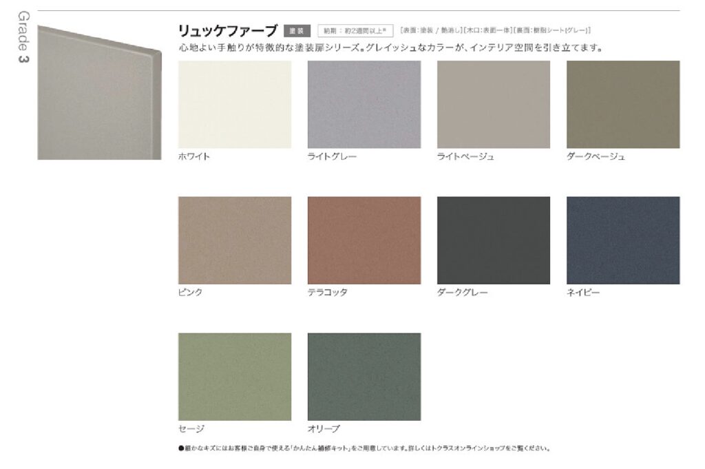 トクラスは扉カラーが非常に豊富で、「見た目+耐久性」の両立が強みです。インテリアに合わせやすいんも嬉しいポイントです。