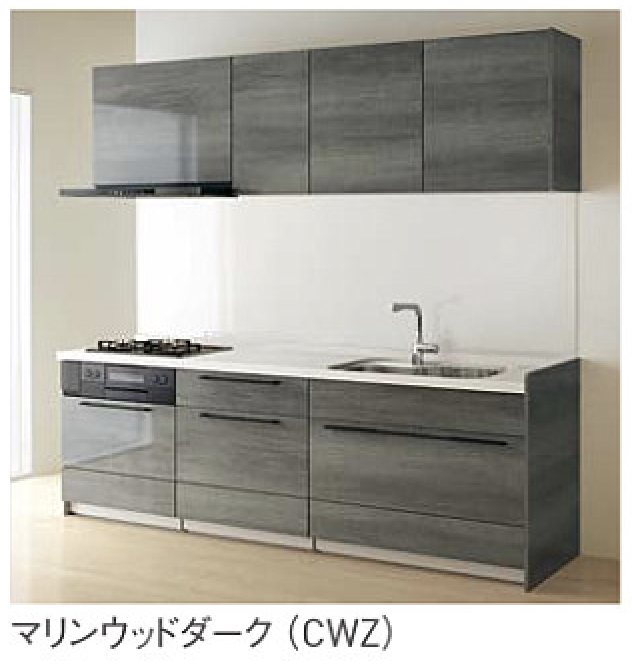 コンクリートや木目の柄が特徴なステディアキッチン
